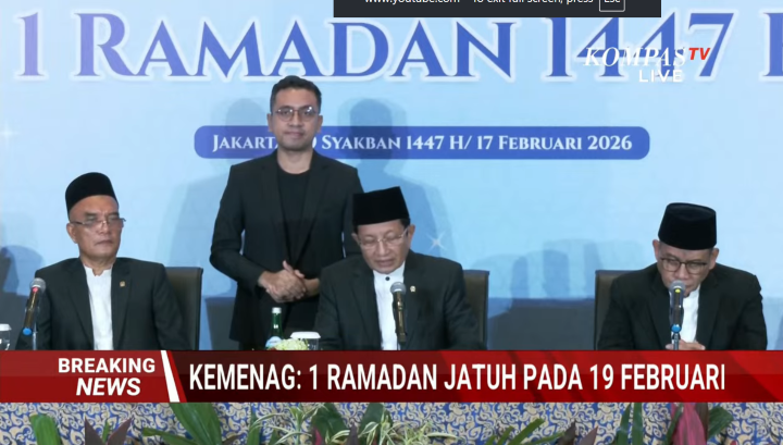 Keputusan itu diambil berdasarkan hasil sidang Isbat penentuan awal Ramadan 1447 H yang dipimpin langsung Menteri Agama Nasaruddin Umar di Hotel Borobudur, Jakarta, malam ini Selasa (17/02/2026).