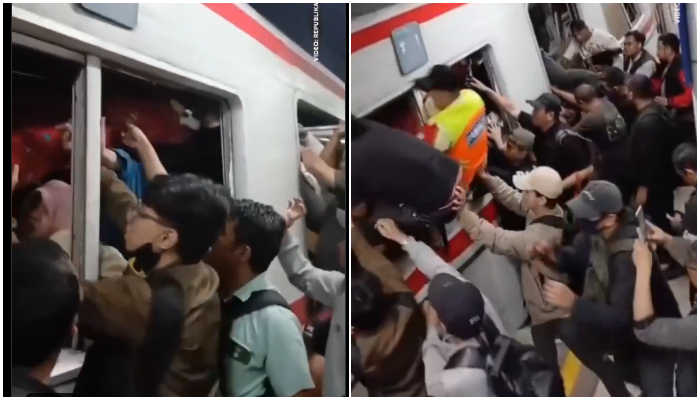 Petugas dan warga terlihat berusaha selamatkaan penumpang KRL yang terjebak (dok, X)