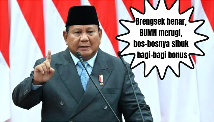BEBASBARU.ID, NASIONAL – Presiden Prabowo benar-benar gerigitan dengan ulah tikus-tikus berdasi, di saat BUMN lagi merugi, pimpinannya malah sibuk akan bagi-bagi bonus akhir tahun.